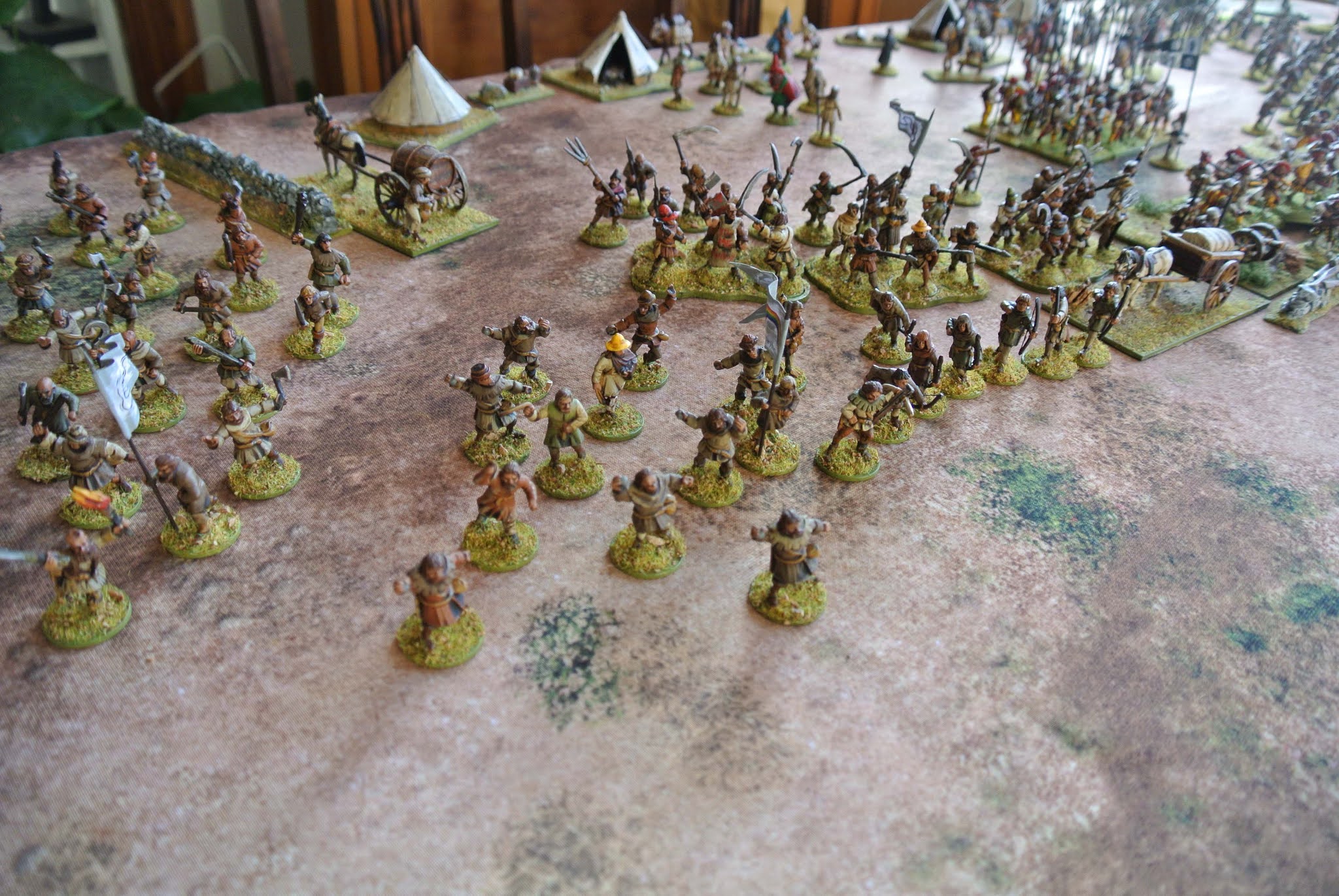 What a great game Michael. Entertaining and visually pleasing. I really liked the contrast between the semi-circular 'mass' of the peasants and the ordered lines of the professional army.
